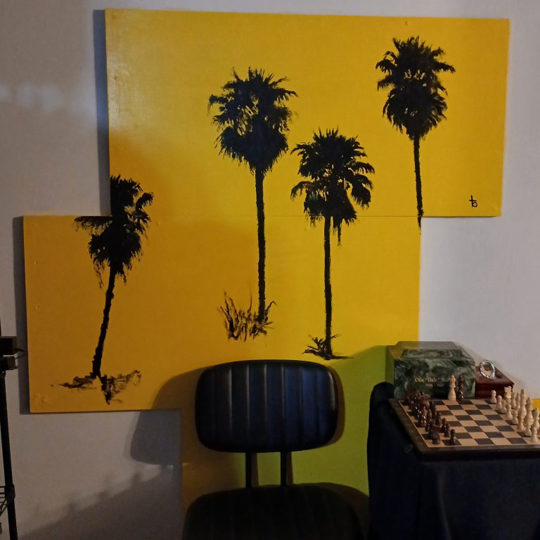 This is an Impressionistic Cabbage Palms Silhouettes Installation that Captain Jeff and I created. For just the artwork, something like this is very easy for us to do, so you could have it on your wall for just $150. For anything larger, we'd have to figure that out, and for an actual plywood installation, that would be a different cost. But again, if you would like something like this (palm tree silhouettes without the plywood installation) of this size, it would only be $150. I want you to know that Captain Jeff and I are very fair and honest with what we offer, and can draw up an estimate for you in advance, with a brief rundown of what is needed. Truly no surprises and very affordable prices. We charge for the actual materials used, the size, and for the outcome. We do NOT charge for time.
